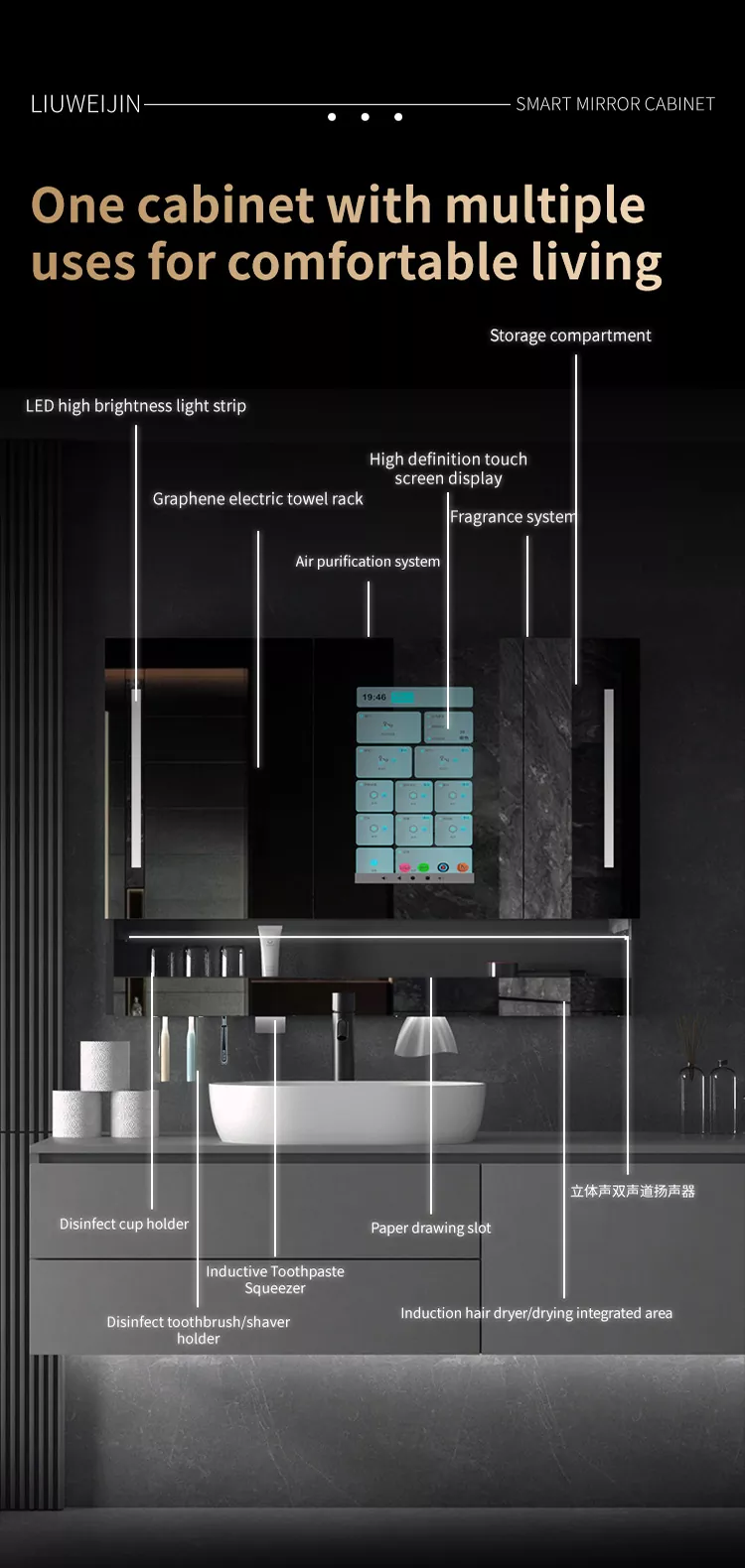 Liuwei Jinshi Graphene Intelligent Bath Mirror Cabinet usnadňuje mytí, čistší a svěžejší koupelny a život pohodlnější.