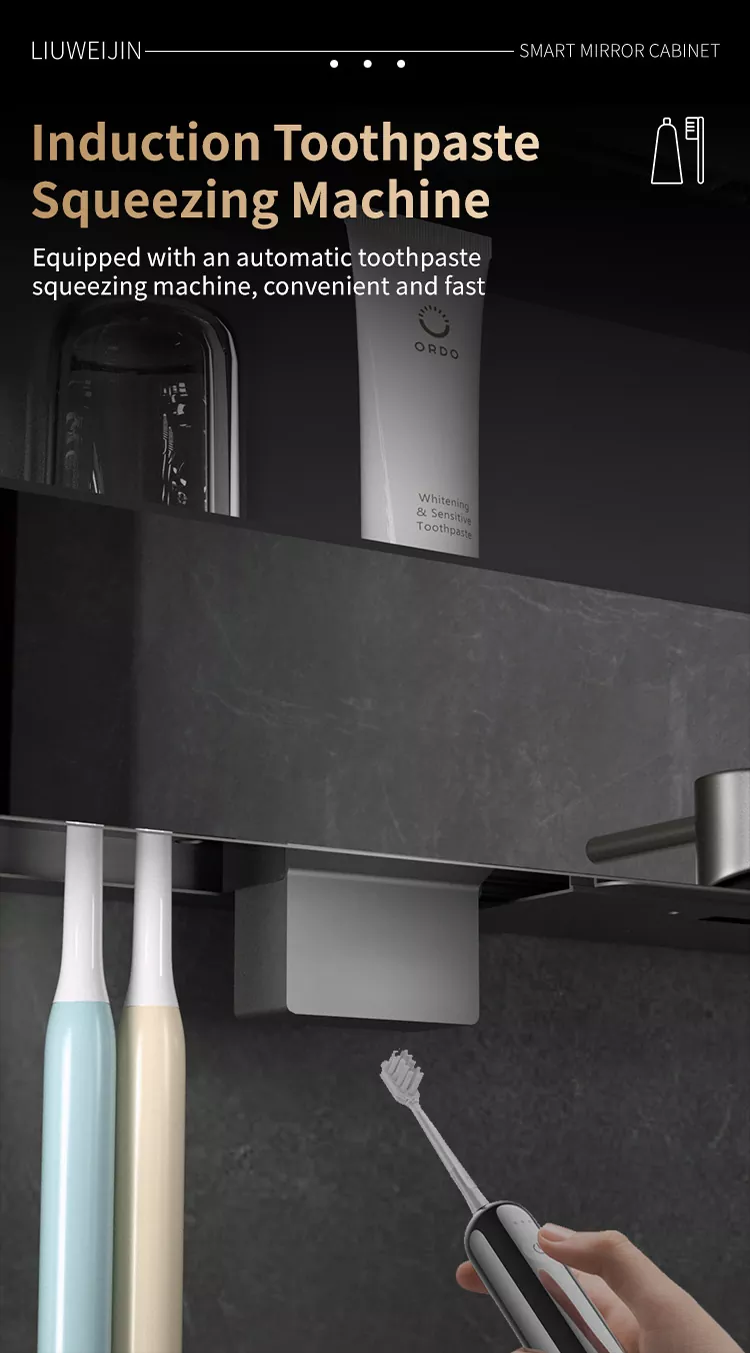 The built-in towel rack adopts the graphene heating element, which not only can quickly dry the towel,Graphene's own far-infrared light wave, which is beneficial to human body, can sterilize and deodorize towels.The hair dryer rack can be linked through a built-in socket and controlled by an external switch,Under the control of the button, the inverted hair dryer can be turned into a hand dryer with the induction system, which can be used at any time.The standard Automatické stroj na mačkání zubní pasty a ultrafialové dezinfekční zařízení pro zubní kartáčky a dezinfekční zařízení pro mytí usnadňuje praní, bezpečné a uklidňující a chrání zdraví celé rodiny. Pokud se stále obáváte o vlhký zápach v koupelně, má tento produkt vestavěný systém čištění vzduchu a vonné modul.